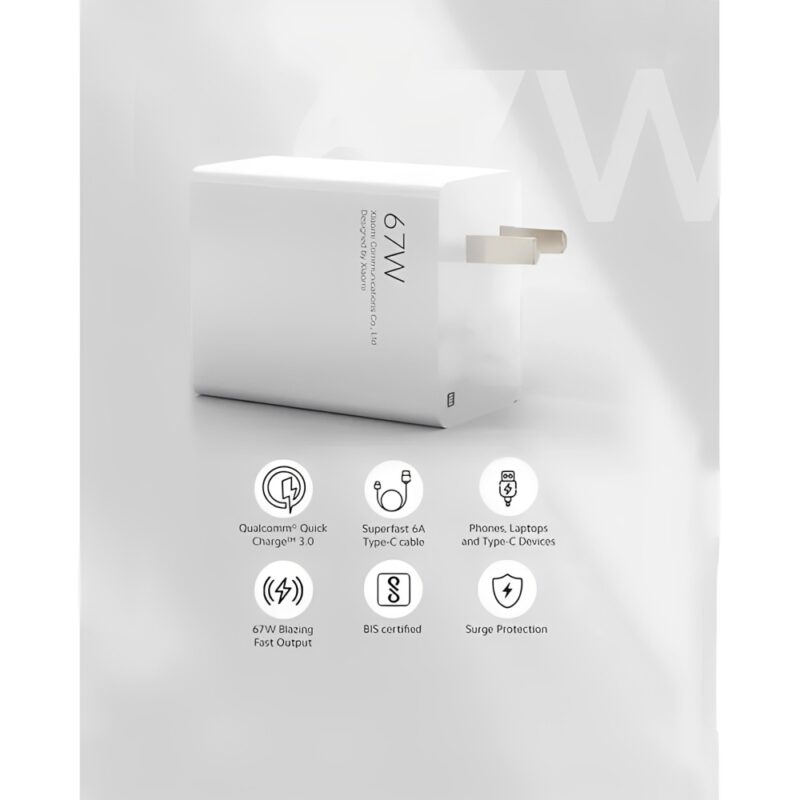 Diseño: Compacto, ligero y portátil Ofrece: Carga rápida, segura y eficiente Potencia: Hasta 67 W Protección contra: Sobrecarga, sobrecalentamiento y cortocircuitos Tecnología: HyperCharge Conector: USB-A a USB-C Compatible con: Dispositivos Xiaomi y otros equipos con carga rápida USB-C