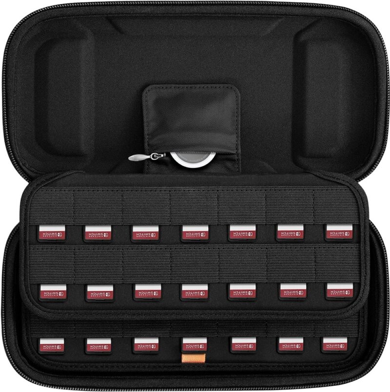 - Se adapta a hasta 56 cartuchos de juegos de Nintendo Switch.